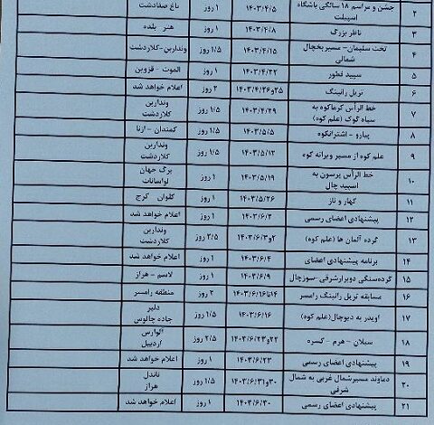 جدول برنامه های رسمی تابستان 1403 باشگاه کوهنوردی و سنگنوردی اسپیلت