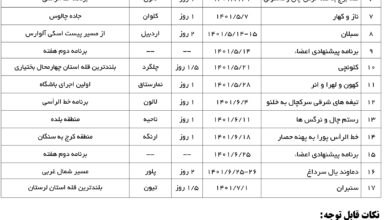 ۴- برنامه های پیشنهادی اعضای رسمی با اعلام قبلی خارج از این جدول قابل اجرا است.