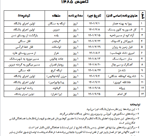 جـدول بـرنـامـههـای «رسمی» سـه مـاهـه پاییز 1401 «باشگاه کوهنوردی و سنگنوردی اسپيلت» تأسیس 1385