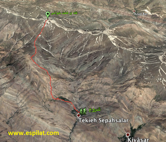 نقشه مسیر صعود و فرود قله هفت خوانی کرج