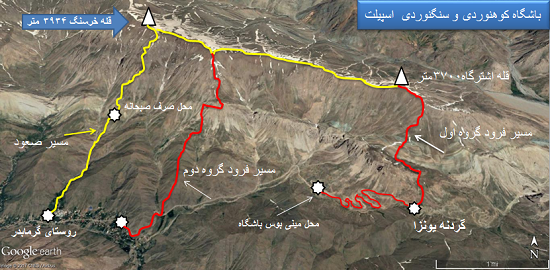 نقشه مسیر صعود و فرود قلل خرسنگ و اشترگاه