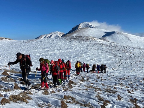 عبور از تیغه های سنگی زیر قله اول چنگیزچال با توجه به بارش برف سنگین چالشی بود و با دقت انجام شد.