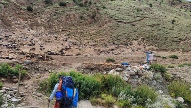 از سرچال، کولههای ۲۵ کیلوگرمی را تا پناهگاه خرابه حمل کردیم و در همانجا چادر زدیم.