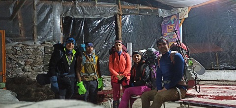 حدود ساعت ۲۱:۱۵ به شیرپلا رسیدیم.درب پناهگاه باز بود ولی استفاده از پناهگاه جزئی از برنامه ما نبود.بنابراین سریعا خود را به کنار شیرپلا و بین درختان که محل مناسبی برای برای کمپ شبانه بود رساندیم.کوله ها را زمین گذاشته و با استفاده از بیل برف مشغول آماده سازی محل کمپ شدیم.