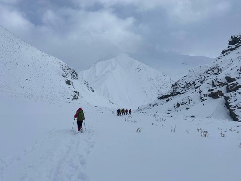 تمام طول مسیر از انتهای روستا تا قله دونا و قلل بعدی صعود شده برفکوبی گردید.
