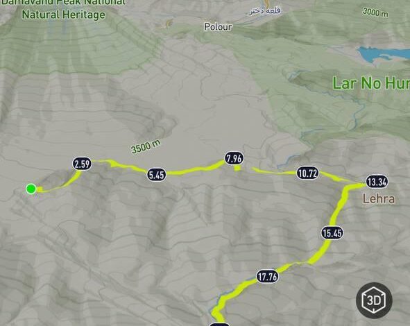 بلافاصله توسط وانت نیسان از ناندل تا زیر گردنه سر داغ به منطقه ای موسوم به (مرتع نسیکه) ادامه مسیر دادیم. همه جا سرسبز و زیبا بود اما جبهه شمالی قله دماوند در پوششی از ابر قرار گرفته بود. در ساعت ۷:۴۵ صعود را شروع کرده حدود ساعت ۱۰ به اولین قله (لاروسر) به ارتفاع ۳۷۳۰ متر دست یافتیم.