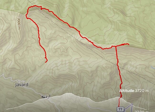 نقشه مسیر صعود و فرود قلل گل زرد و سیاه پلاس