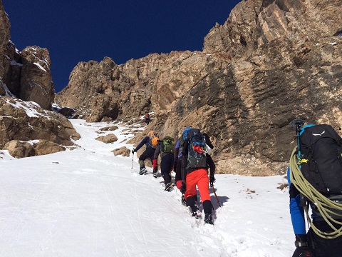 به محض رسیدن به انتهای روته و در هوای بسیار سرد به سمت یال عازم شدیم.