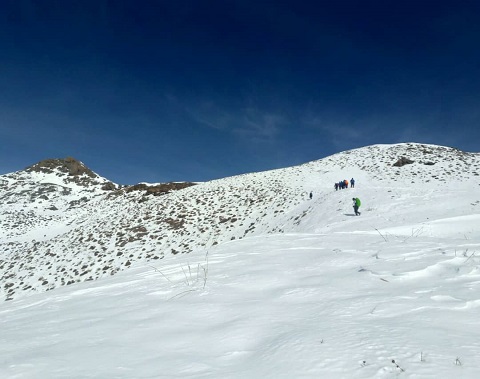 از ابتدای یال قله ، برف کوبی داشتیم.حجم برف حدوداً ۳۰ سانتی متر و گاهاً بیشتر بود.