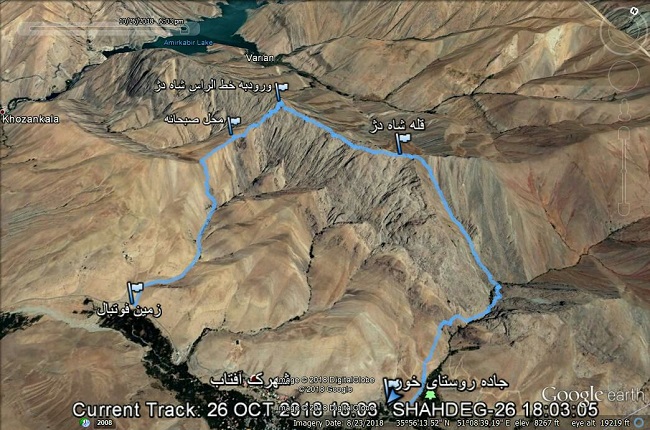 نقشه مسیر صعود و فرود قله شاه دژ