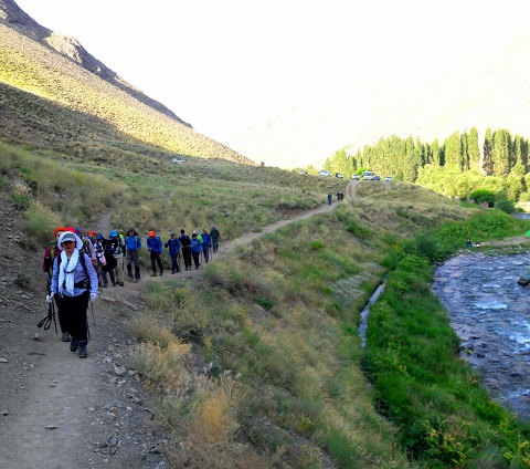 به دلیل ازدحام کوهنوردان در اول دره ، از خوردن صبحانه در کنار چشمه و درختان این محل صرف نظر و کمی جلوتر صبحانه را صرف کردیم.