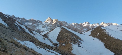 تیم ما با کمک کلنگ و باطوم کوهنوردی به راحتی از آن ها عبور کرد و در ساعت ۱۰:۳۰ به بالای دره پرشیبی رسید که یک تابلو راهنما و سنگچین های مشخصی داشت.