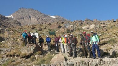 باید توجه کرد مسیر صعود از میان سنگ های بزرگ ریزشی و از میان پاکوبی نیمه پنهان می گذرد.