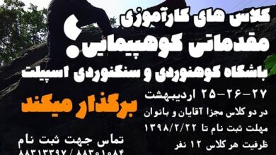باشگاه کوهنوردی و سنگنوردی اسپیلت برگزار می کند : دوره غارپیمایی (آقایان) تاریخ ۲۷ و ۲۸ مهرماه مدارک لازم…