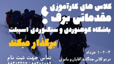 باشگاه کوهنوردی و سنگنوردی اسپیلت برگزار می کند کلاسهای کارآموزی مقدماتی برف (آقایان و بانوان) کلاس مقدماتی برف : ۱…